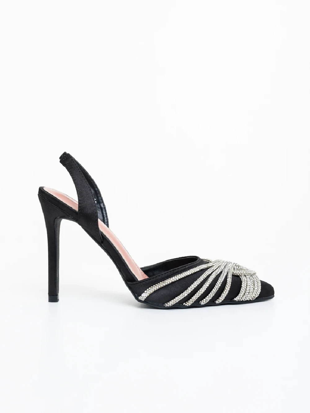 Pantofi dama cu toc negri din material textil Danara Detalii produs