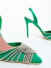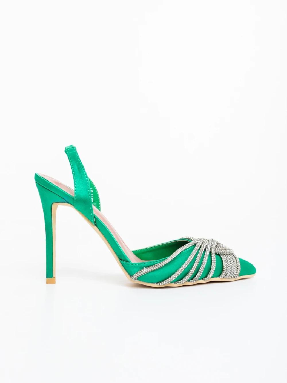 Pantofi dama cu toc verzi din material textil Danara Detalii produs