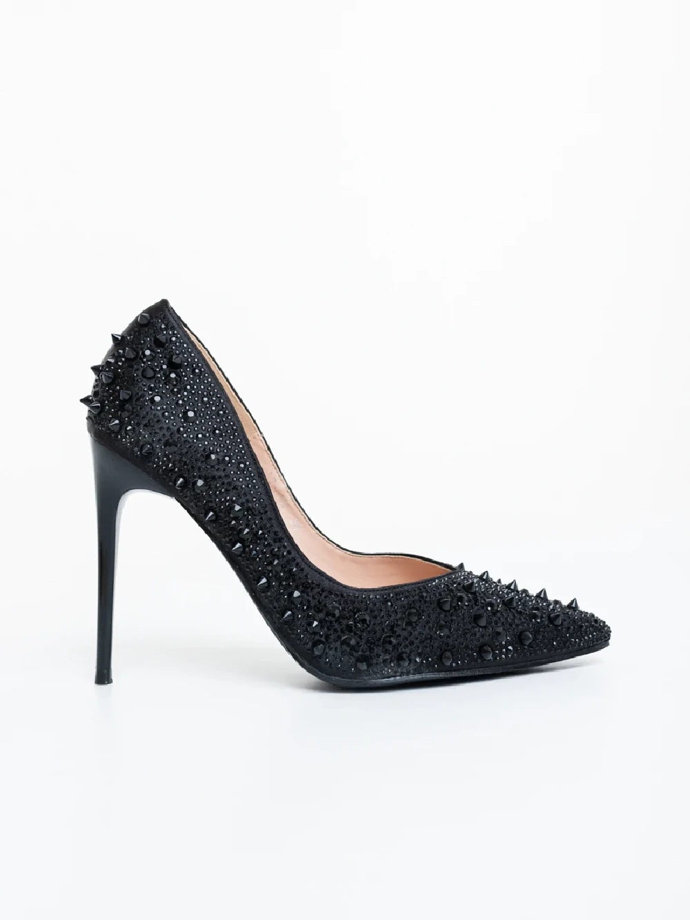 Pantofi dama cu toc negri din material textil Zamera Detalii produs