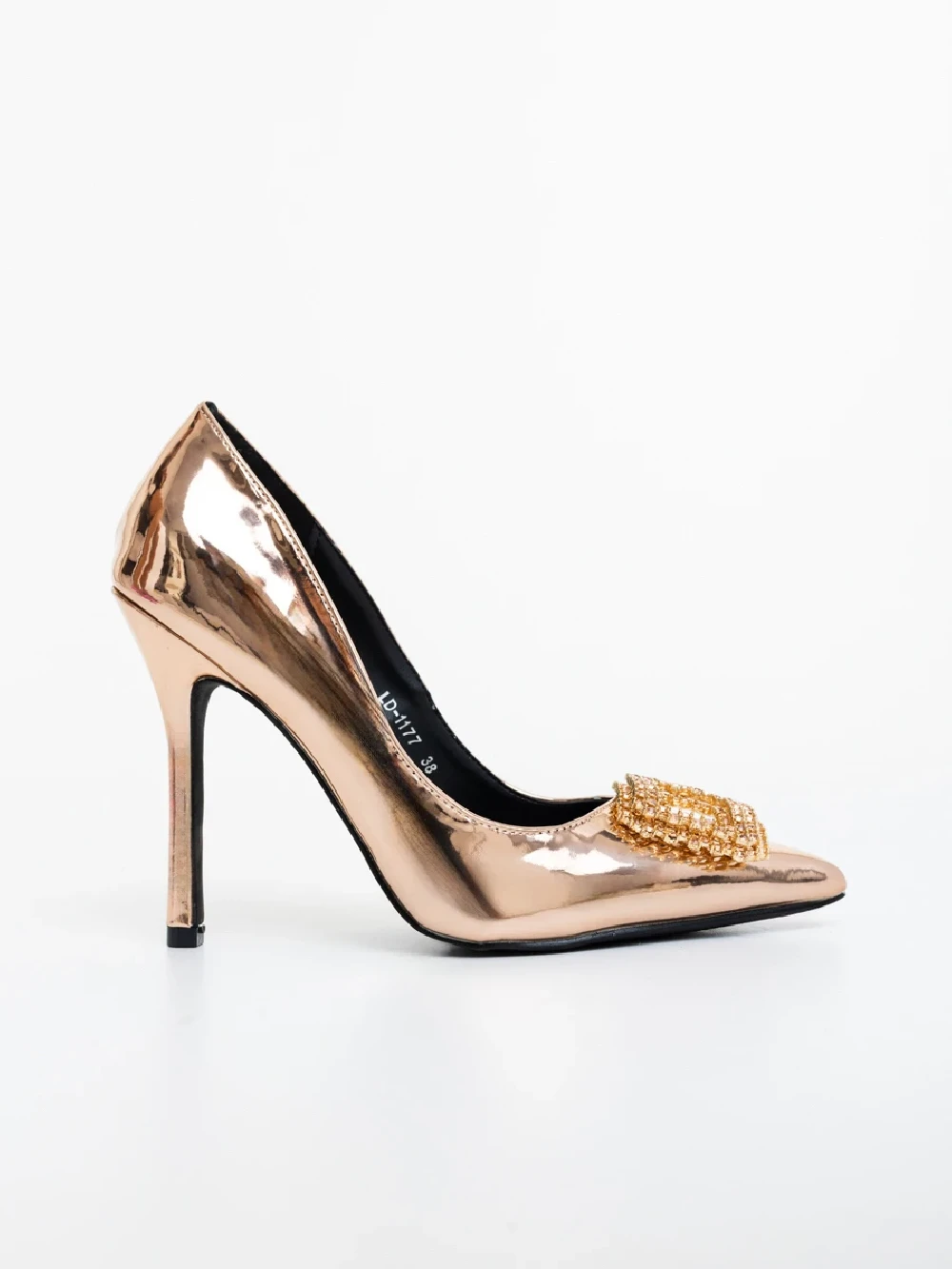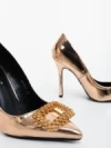 Pantofi dama cu toc sampanie din piele ecologica lacuita Lusera Detalii produs