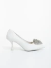 Pantofi dama cu toc albi din material textil Harina