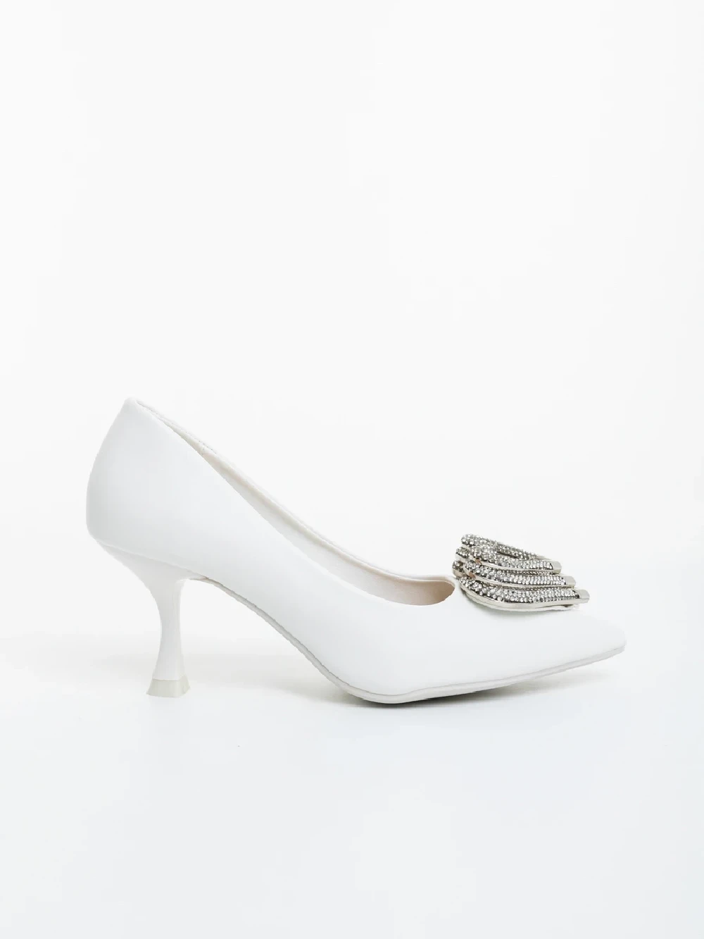 Pantofi dama cu toc albi din material textil Harina Detalii produs