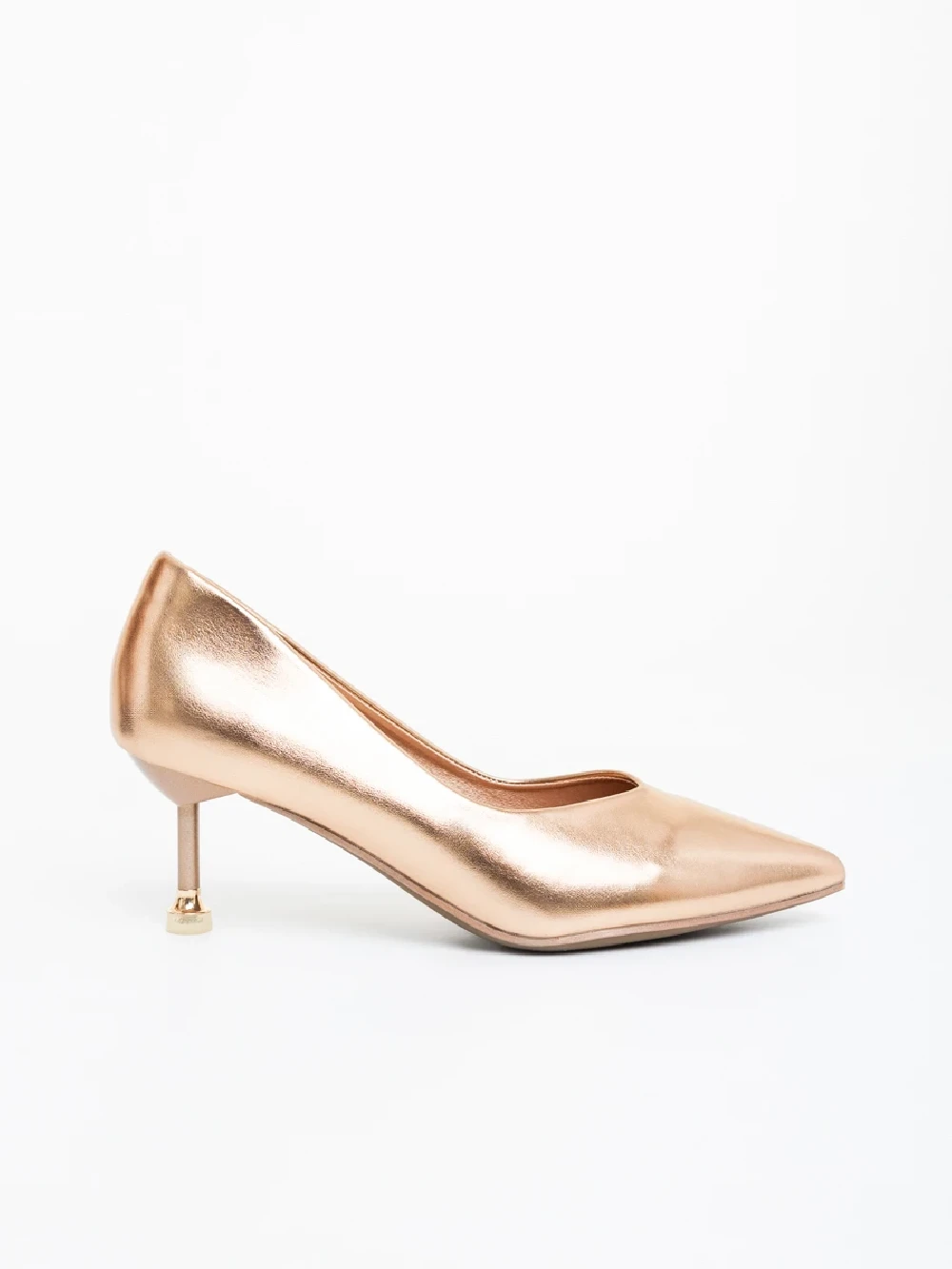 Pantofi dama cu toc sampanie din piele ecologica lacuita Caravela Detalii produs