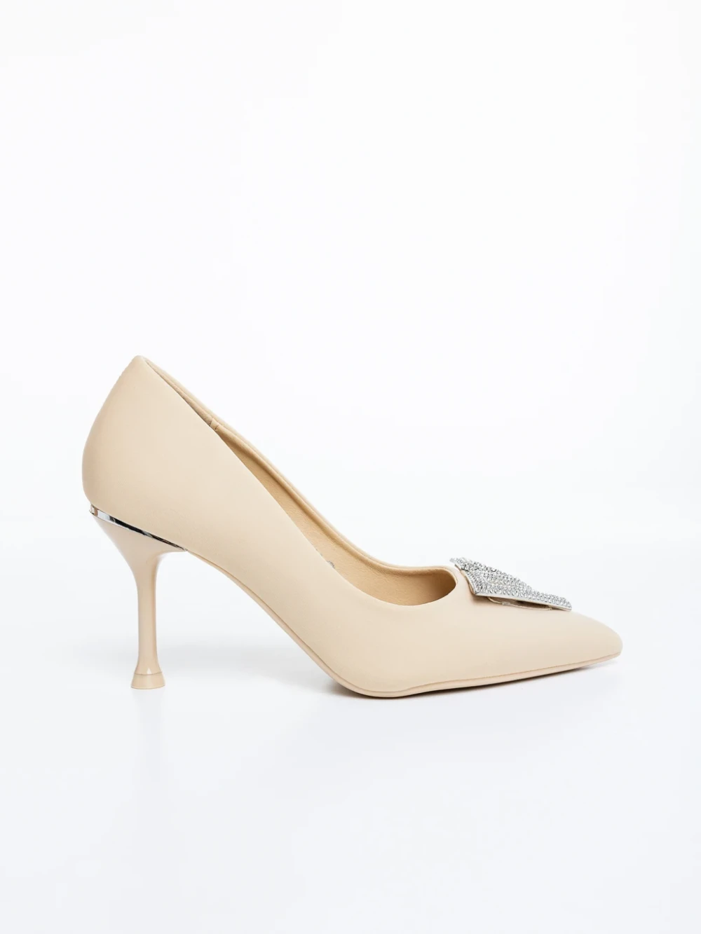 Pantofi dama cu toc bej deschis din material textil Mezara Detalii produs