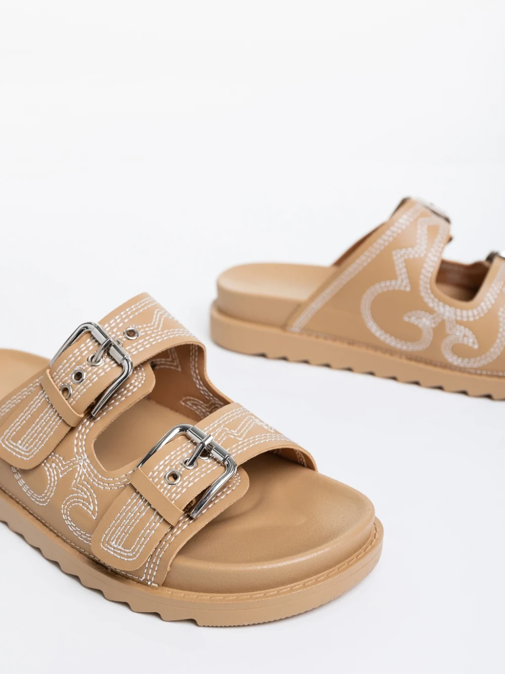 Papuci dama bej inchis din piele ecologica Eiko Detalii produs