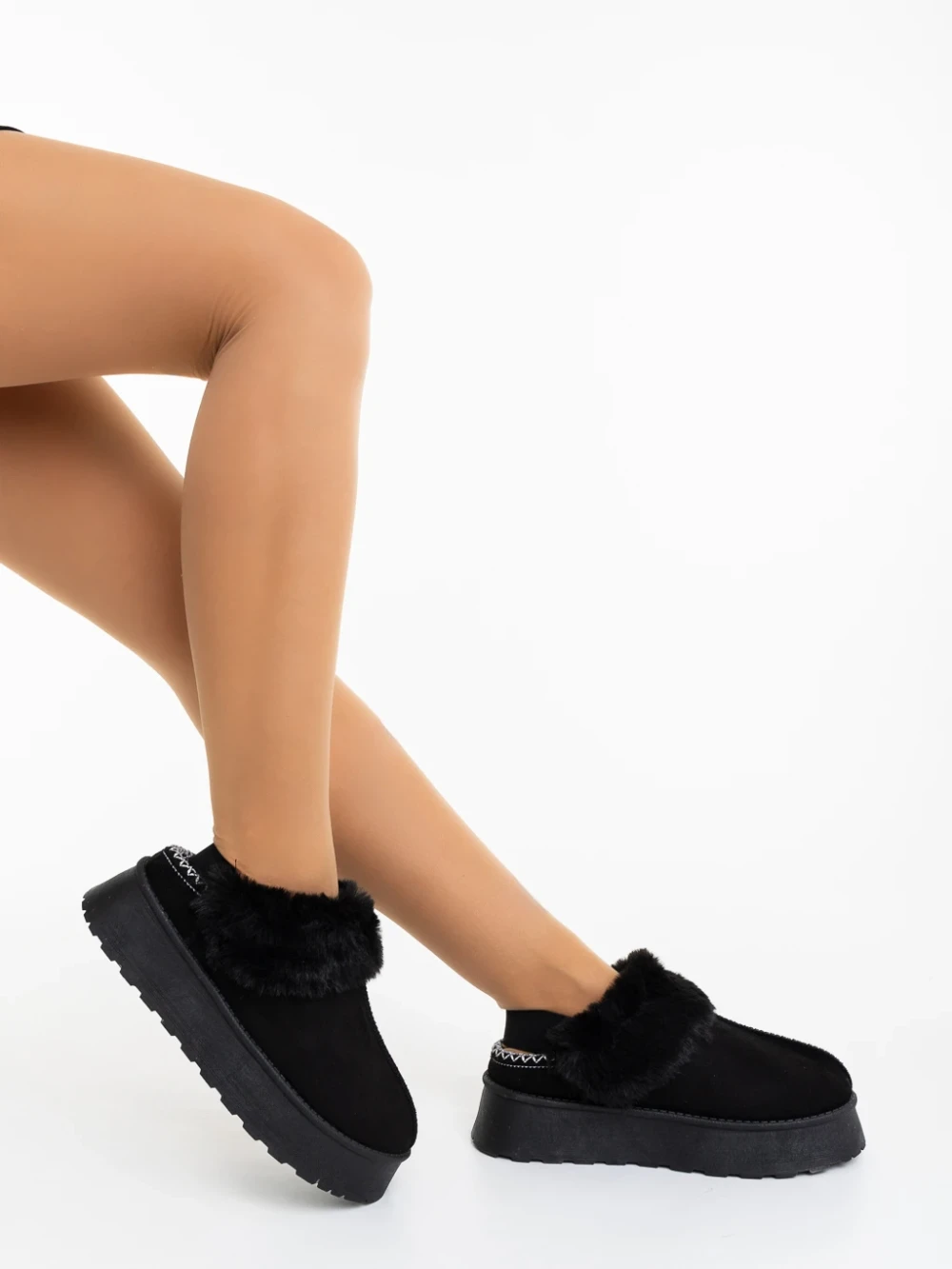 Papuci Dama cu Platforma 2XN9 Negru Mei