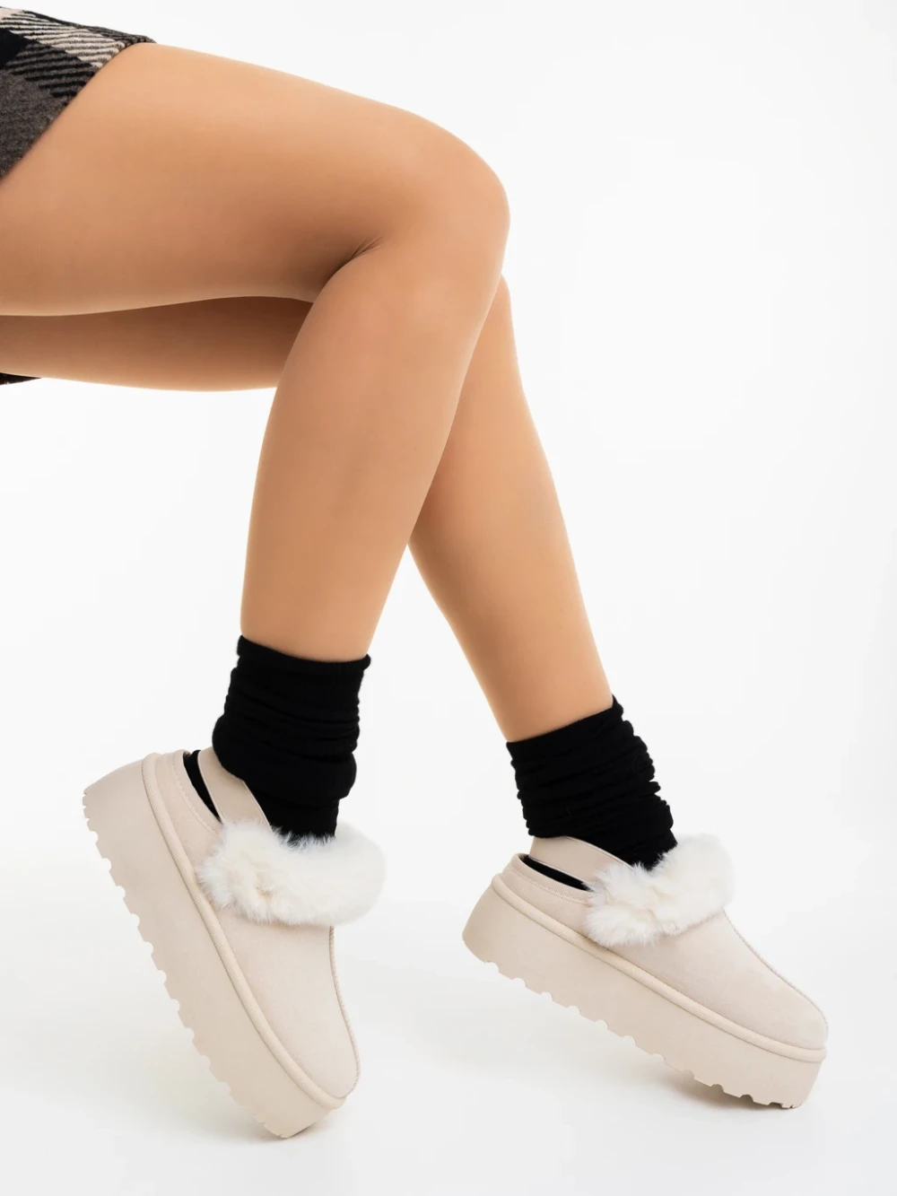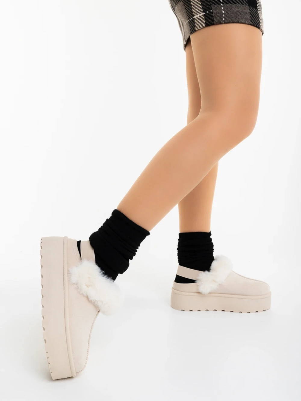 Papuci dama bej deschis din material textil Temaria Detalii produs