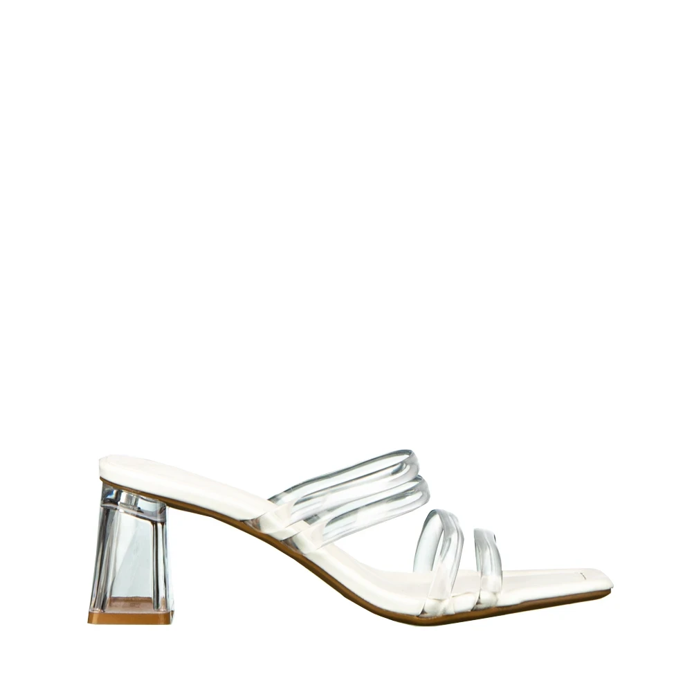 Papuci dama cu toc albi din piele ecologica Ranya