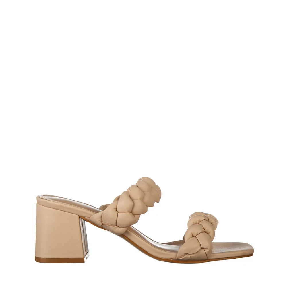 Papuci dama cu toc bej din piele ecologica Mylah