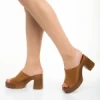 Papuci dama Girlhood camel din piele intoarsa Anisa