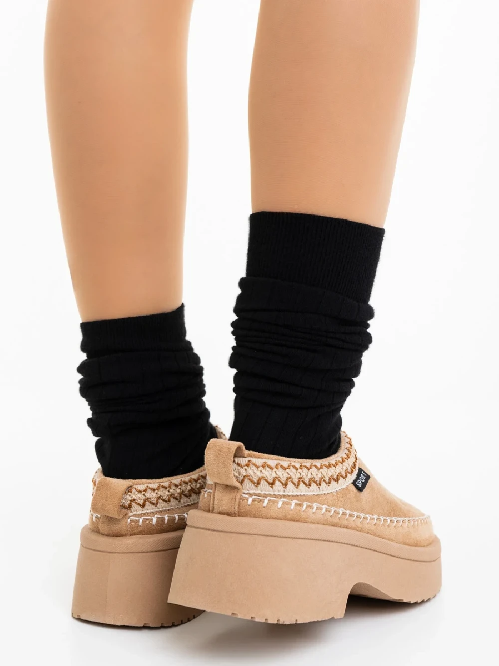 Papuci dama bej inchis din material textil Zafira Detalii produs
