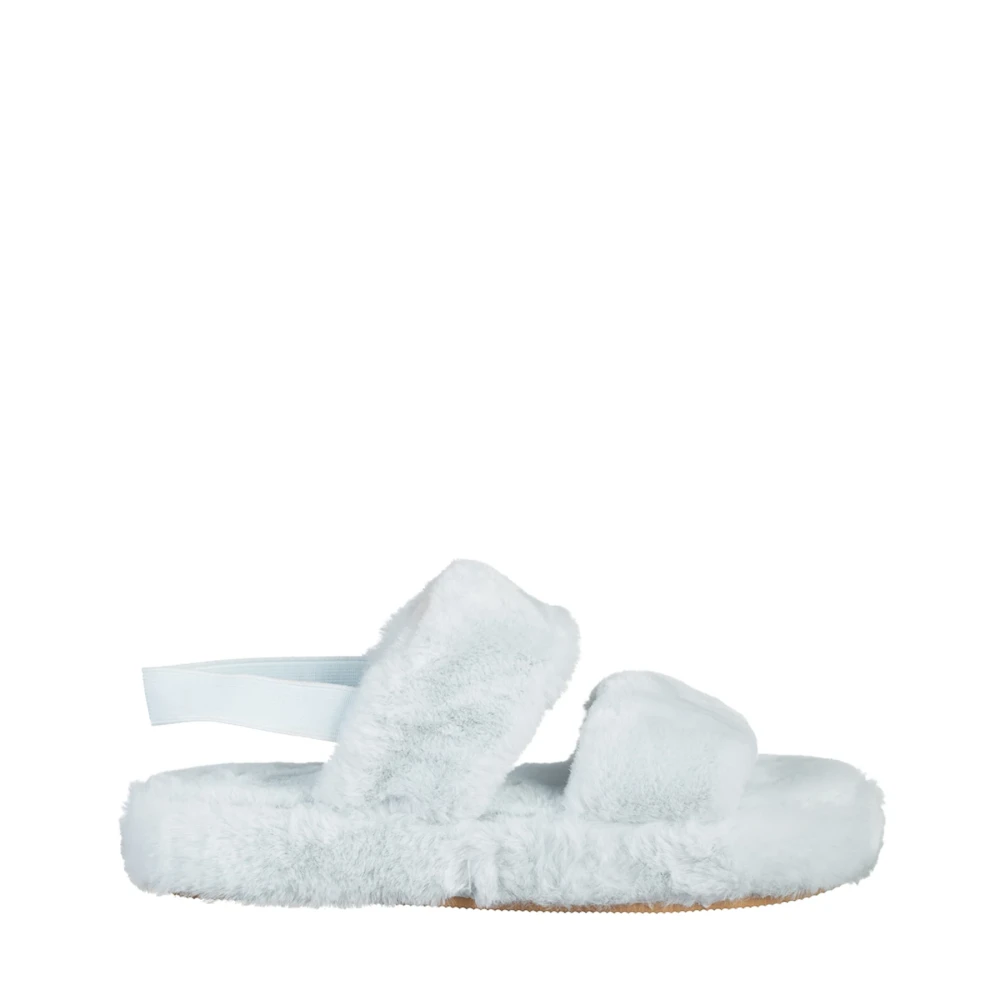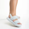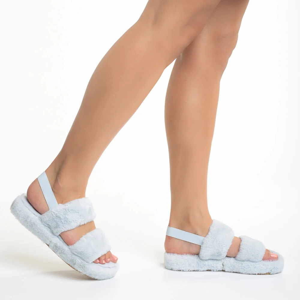 Papuci dama albastri din blana sintetica Reneka