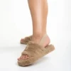 Papuci dama bej inchis din blana sintetica Retal