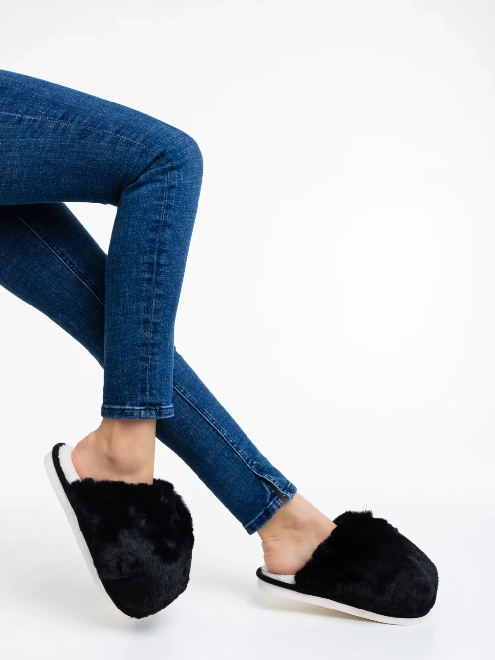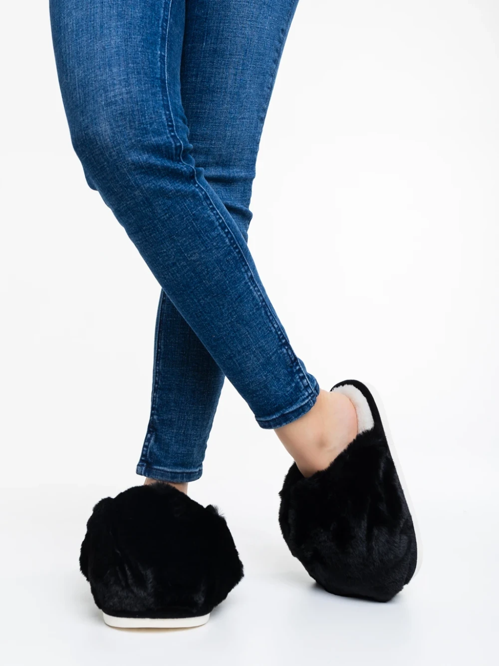 Papuci dama negri din blana sintetica Donisha