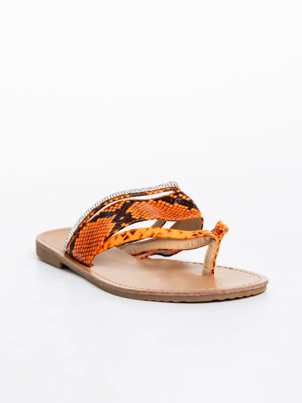 Papuci dama portocalii din piele ecologica lacuita Savanna