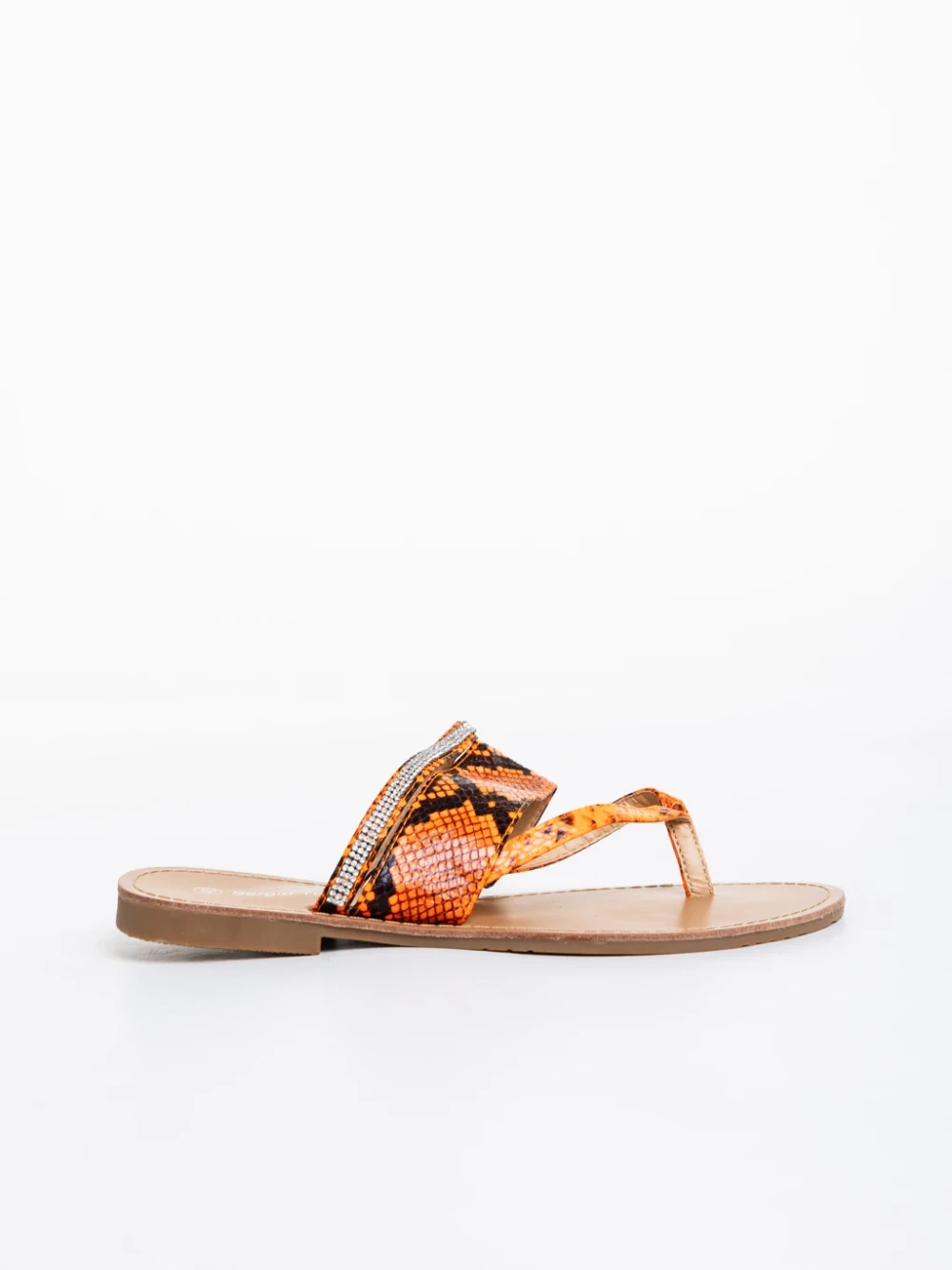 Papuci dama portocalii din piele ecologica lacuita Savanna Detalii produs