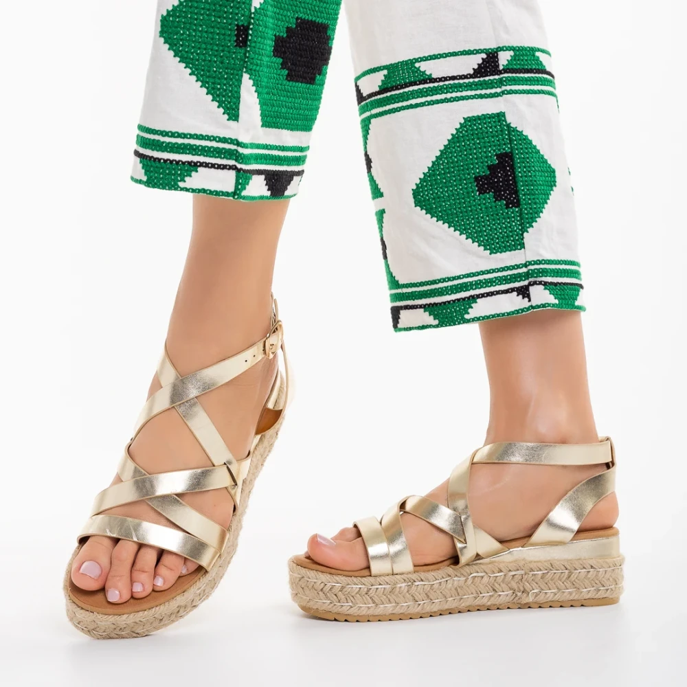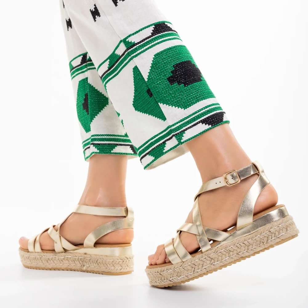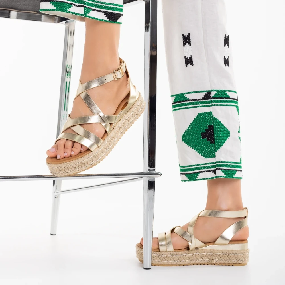 Sandale dama aurii din piele ecologica Xiena