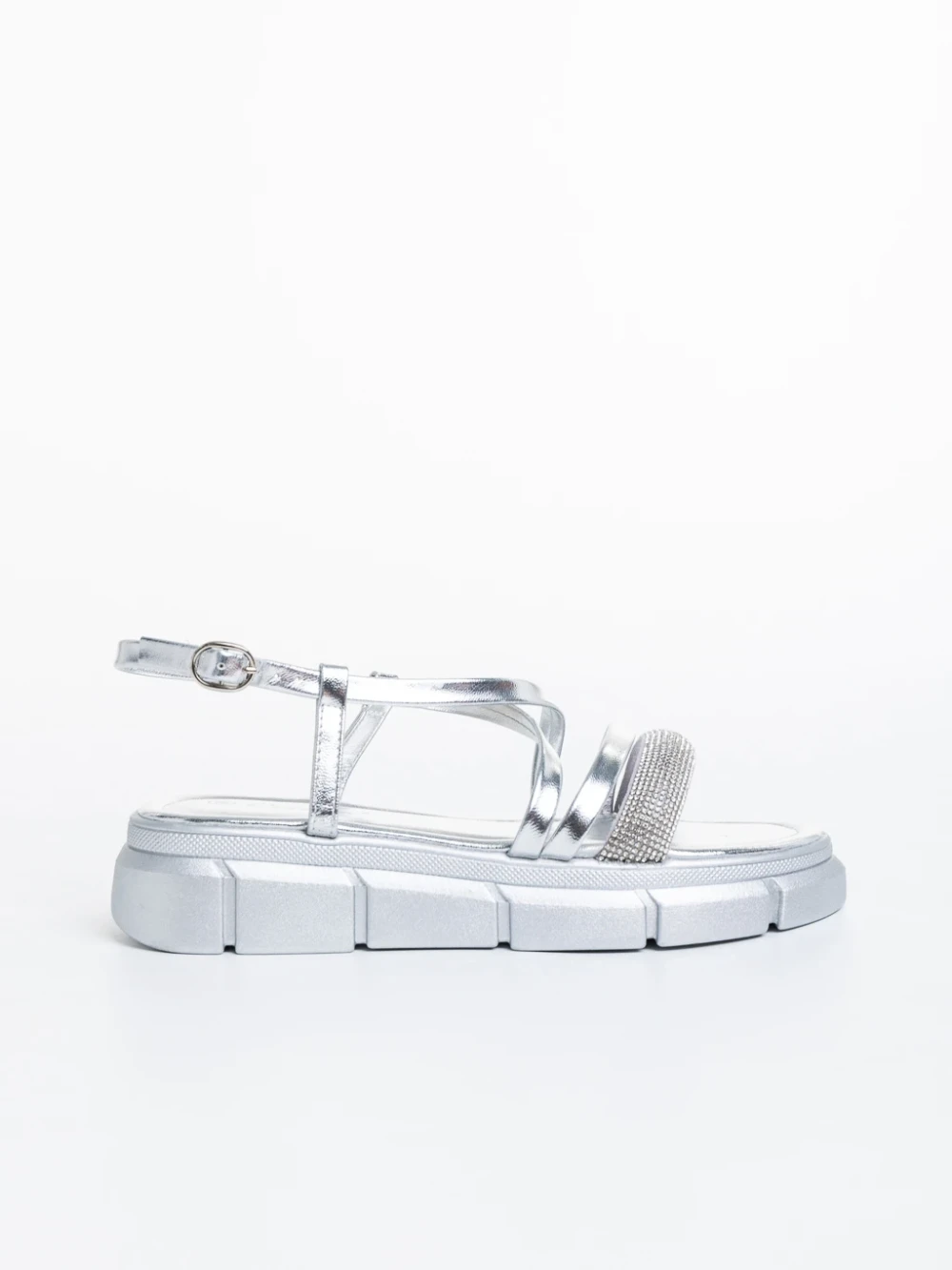 Sandale dama argintii din piele ecologica lacuita Sayda