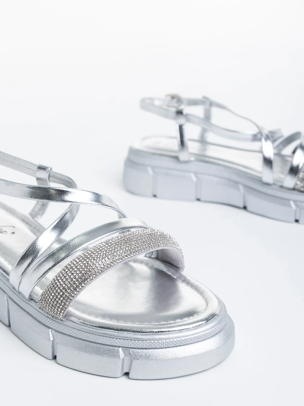 Sandale dama argintii din piele ecologica lacuita Sayda Detalii produs