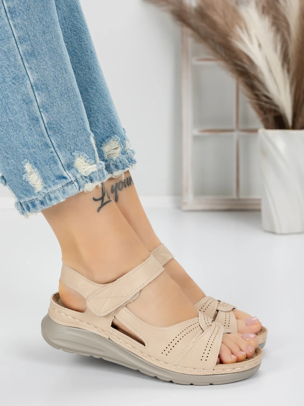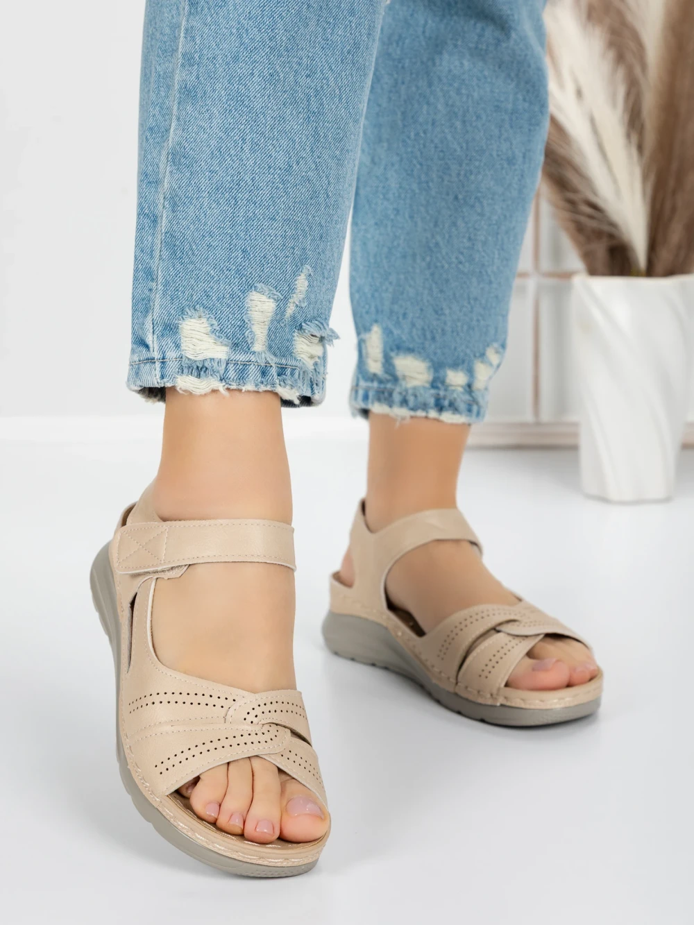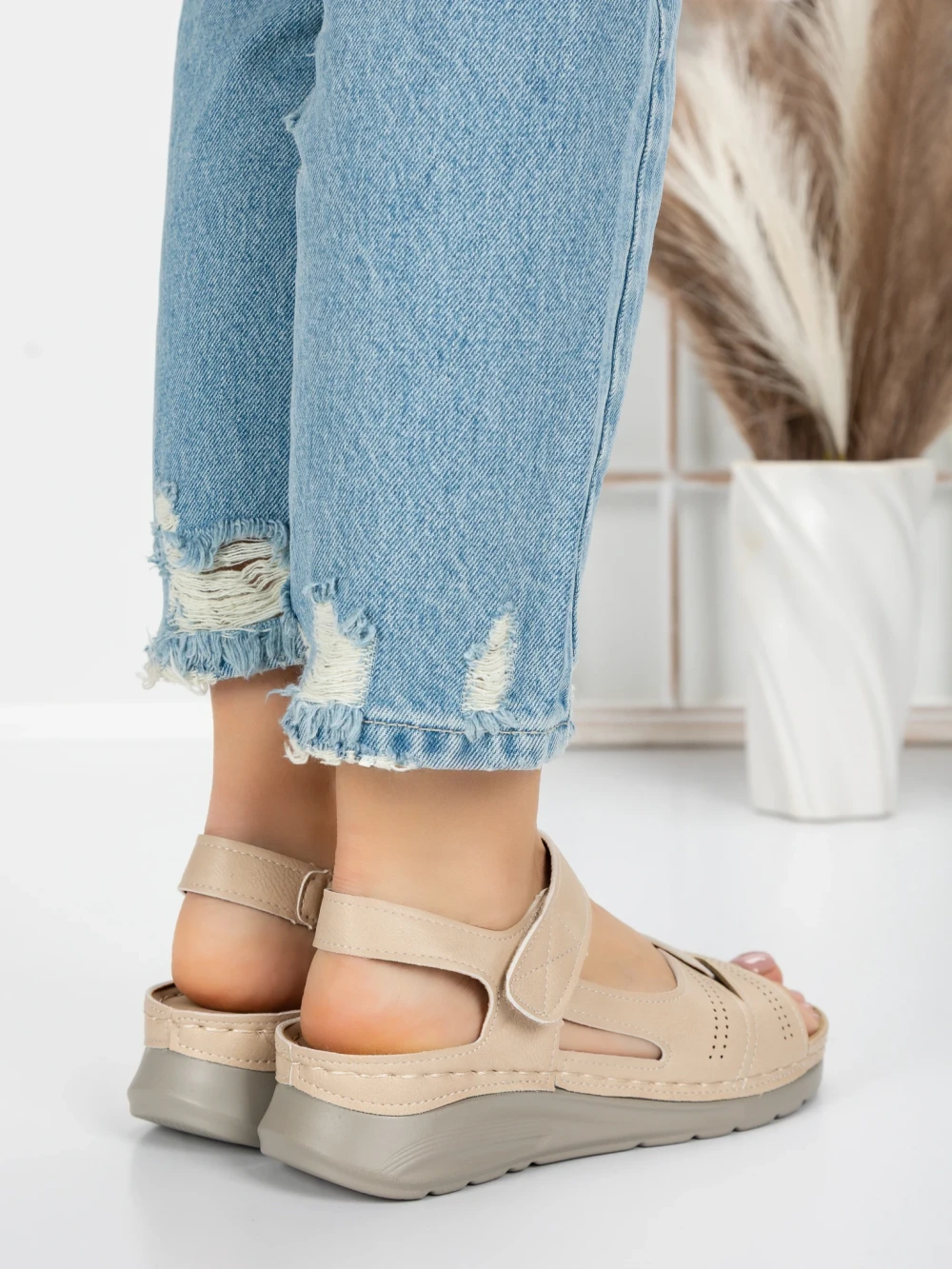 Sandale Dama cu Talpa Joasa 5XJ50 Bej | Mei