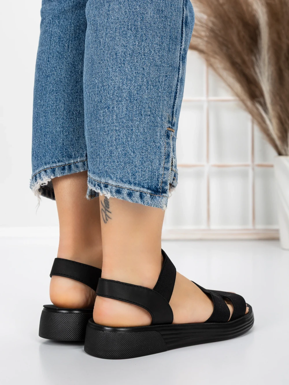 Sandale Dama cu Talpa Joasa 5XJ65 BLACK | MEI
