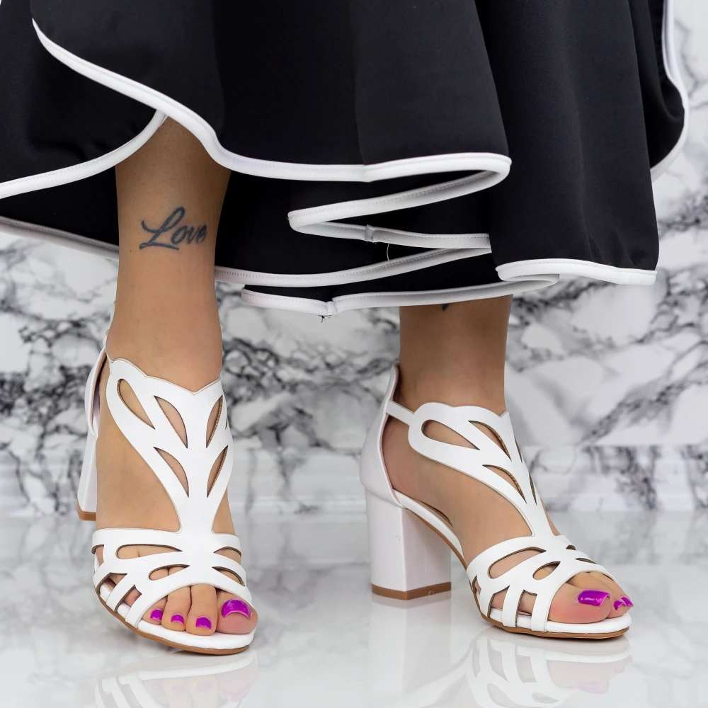 Sandale Dama cu Toc Gros 5GZ57 Alb | Mei