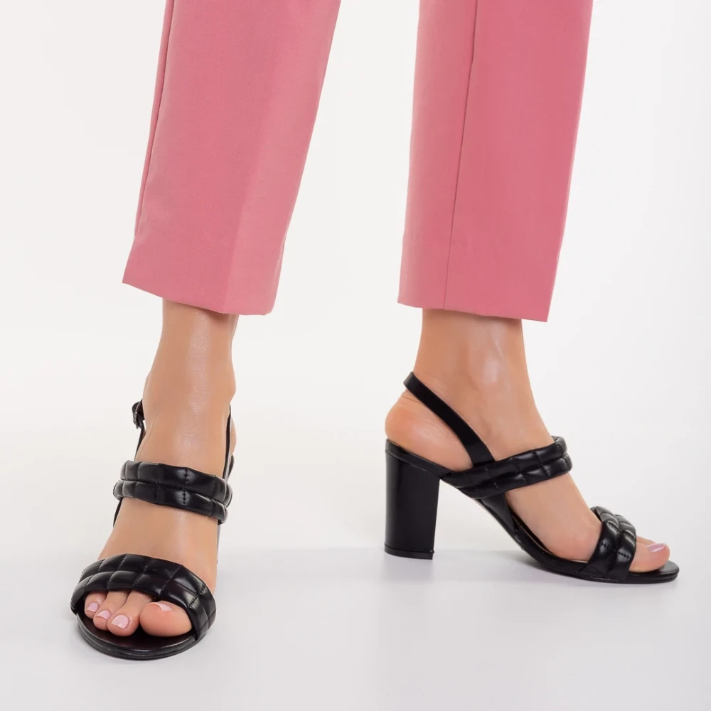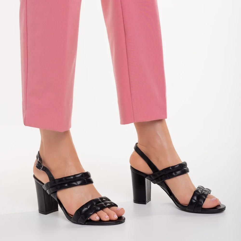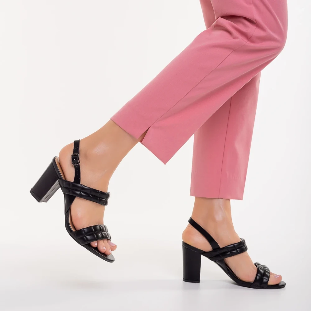 Sandale dama cu toc negre din piele ecologica Nicolle
