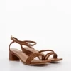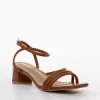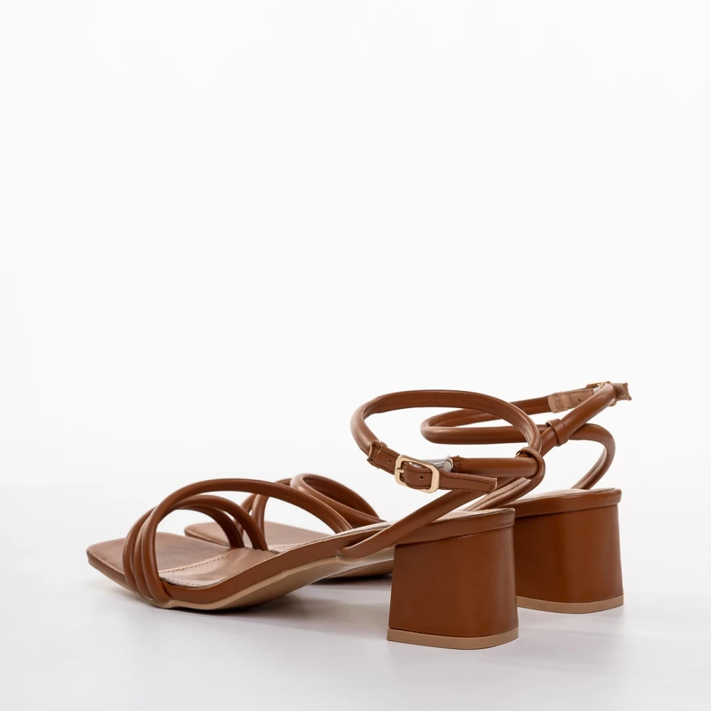 Sandale dama cu toc bej din piele ecologica Nicolle