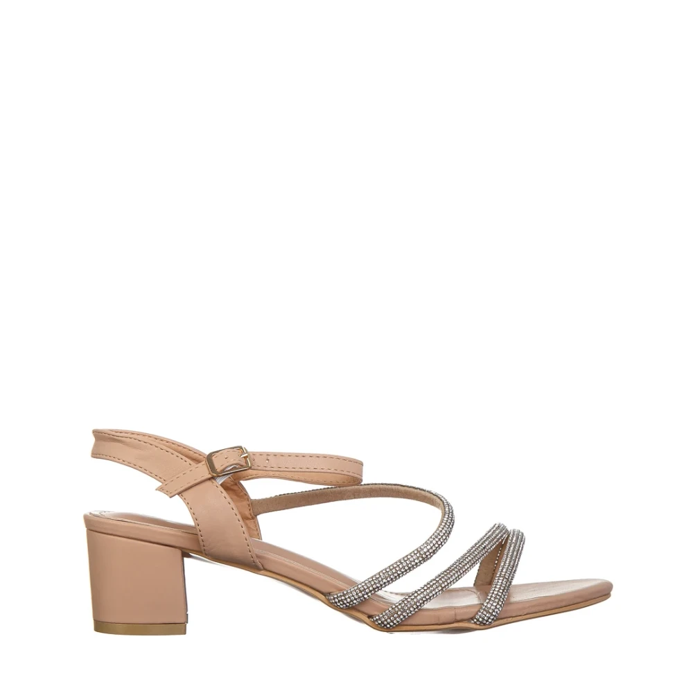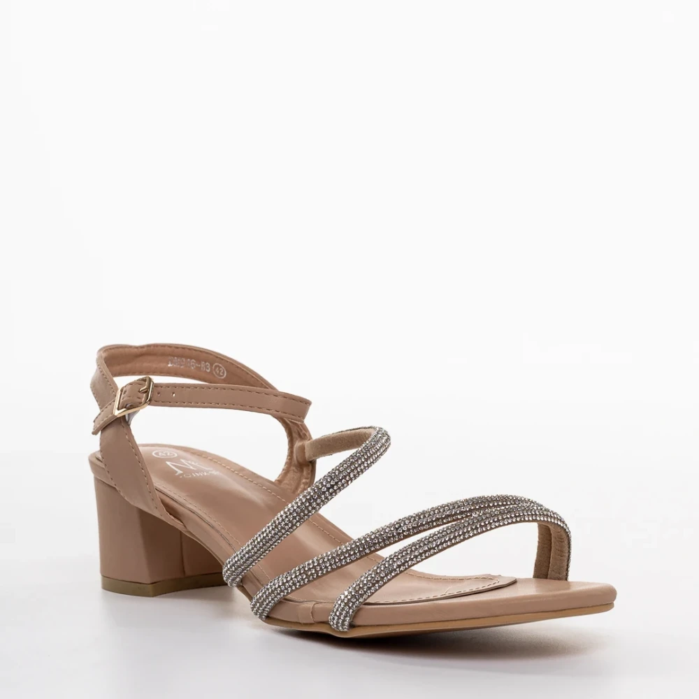 Sandale dama cu toc bej din piele ecologica Averie