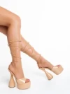 Sandale dama bej deschis din piele ecologica lacuita Narine