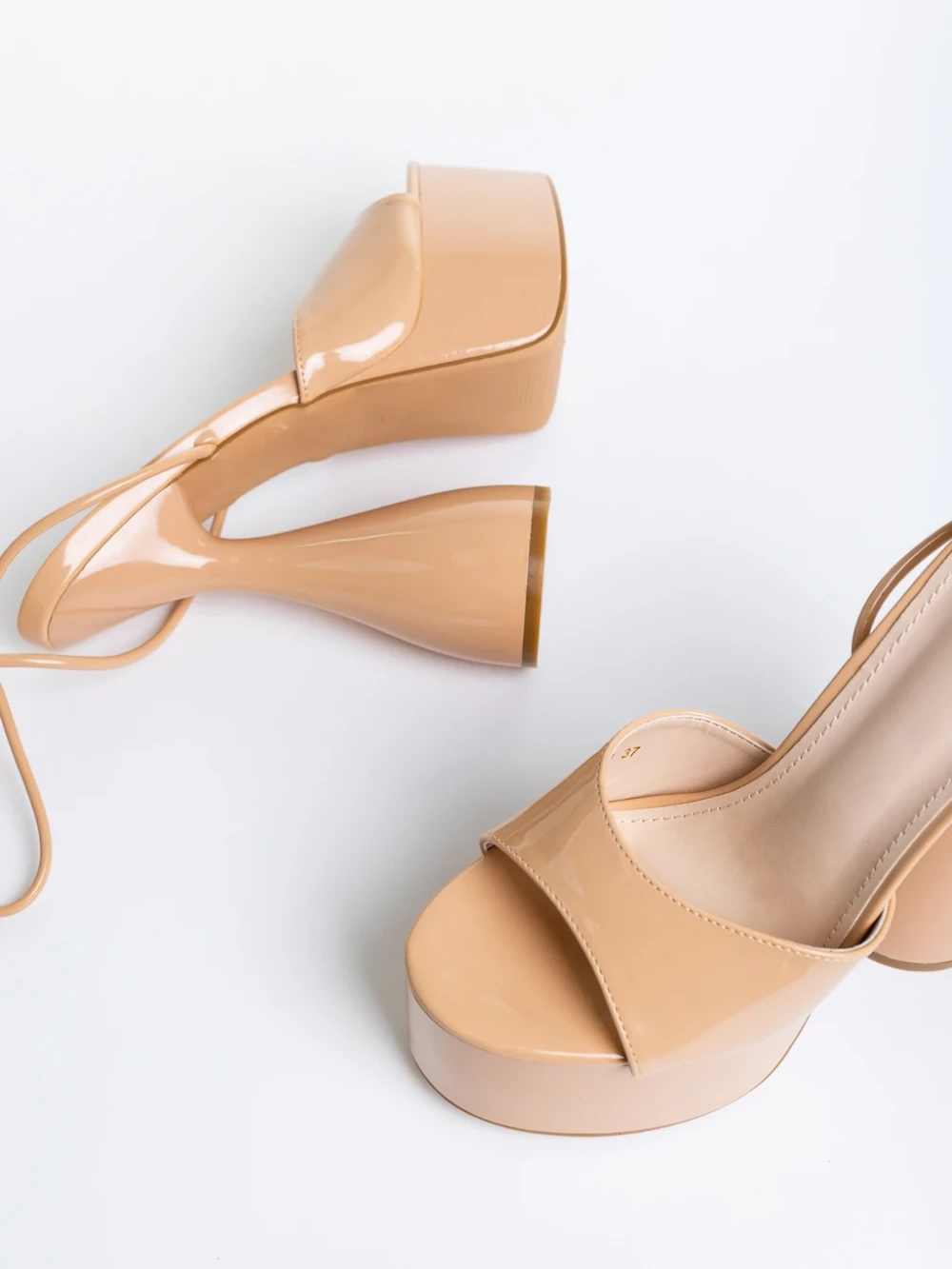 Sandale dama bej deschis din piele ecologica lacuita Narine Detalii produs