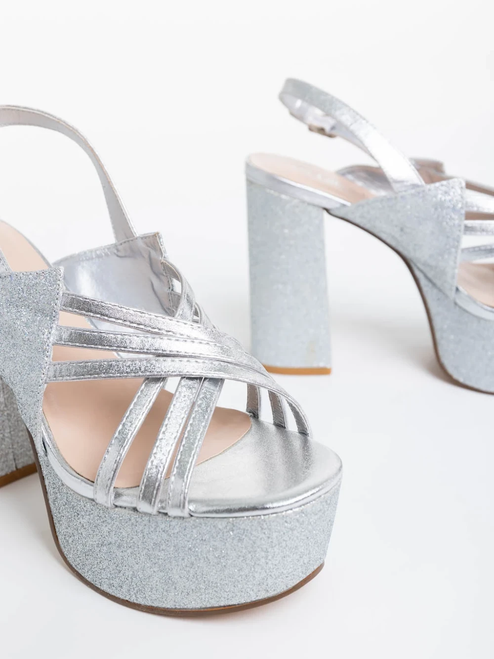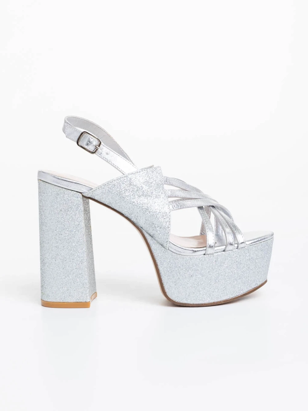 Sandale dama argintii din piele ecologica Tasnim Detalii produs