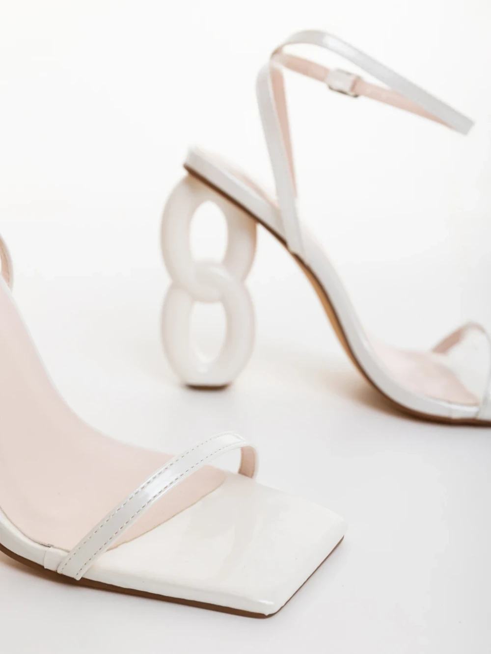 Sandale dama albe din piele ecologica lacuita Valeta Detalii produs