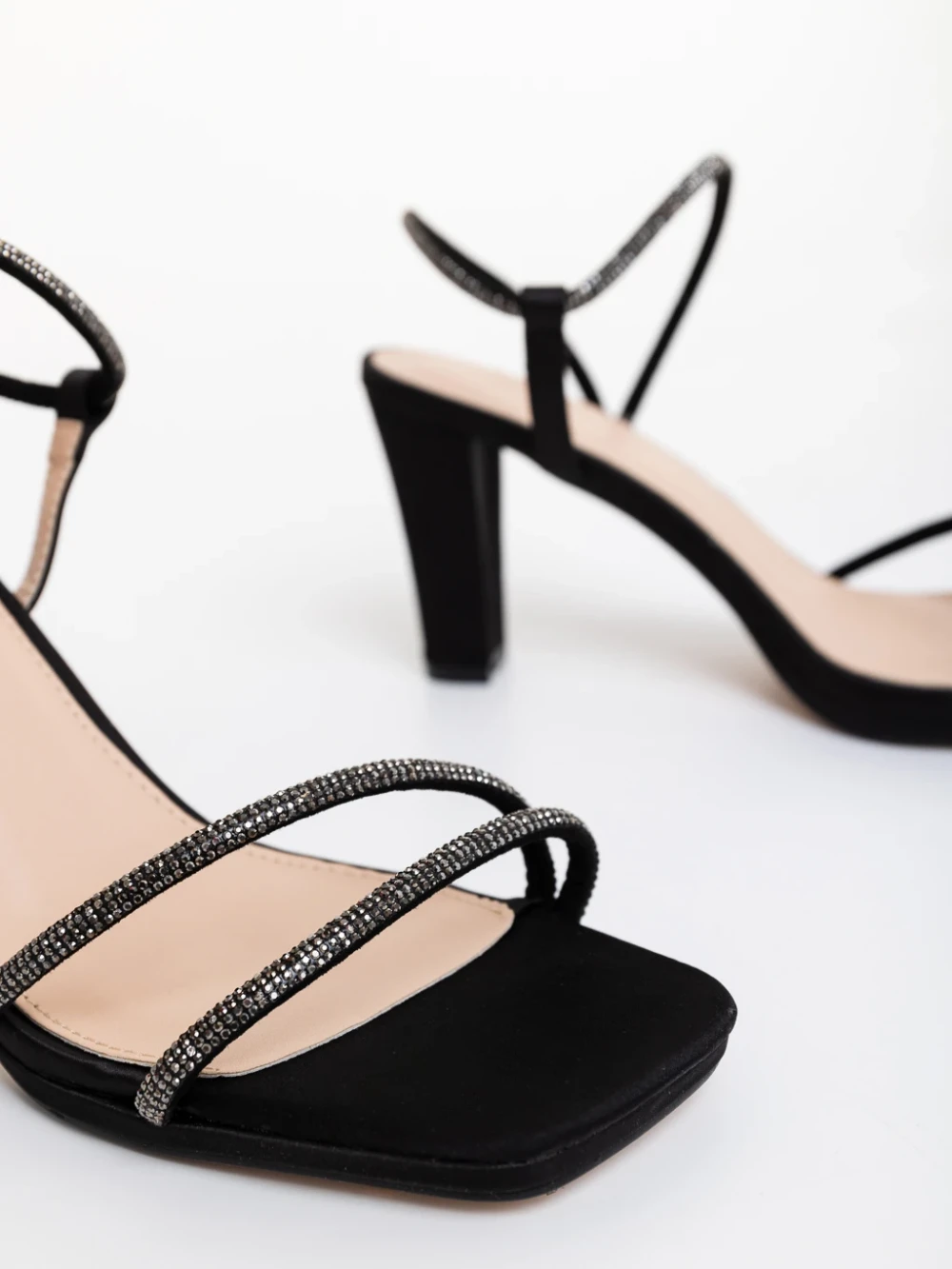 Sandale dama cu toc negre din material textil Delenia Detalii produs