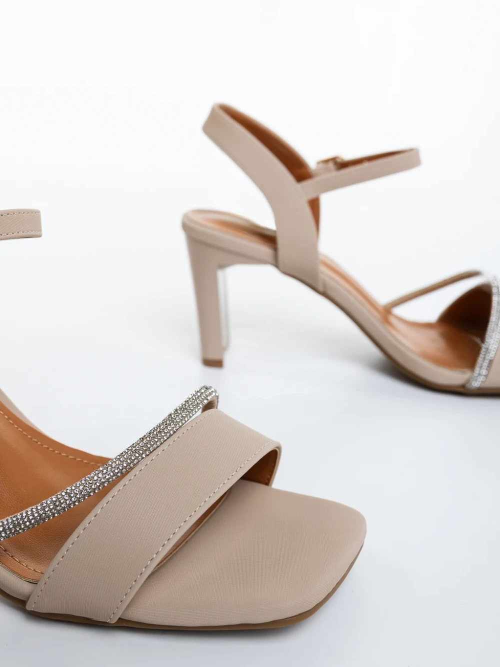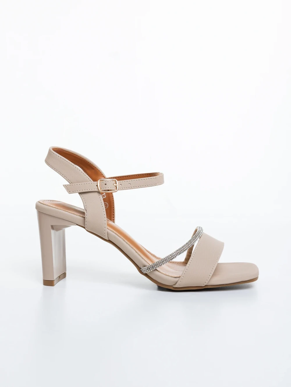 Sandale dama cu toc bej inchis din material textil Selesa Detalii produs