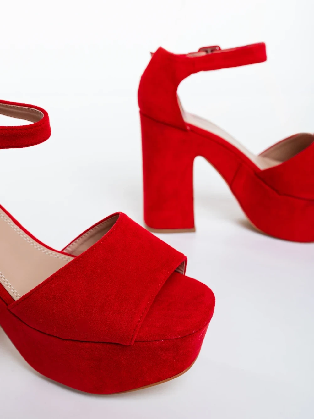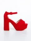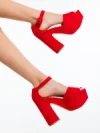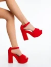Sandale dama cu toc rosii din material textil Elenia Detalii produs