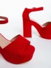 Sandale dama cu toc rosii din material textil Elenia
