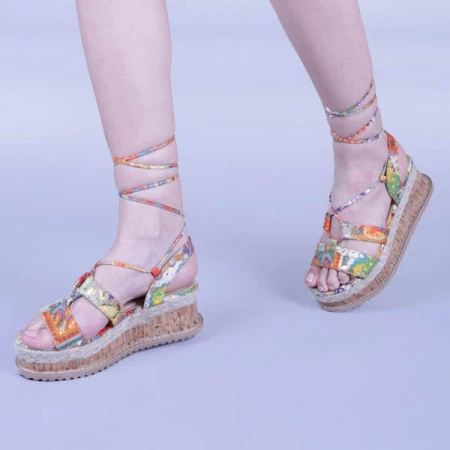 Sandale Dama cu Toc gros si Platforma 956-19 Galben Botinelli