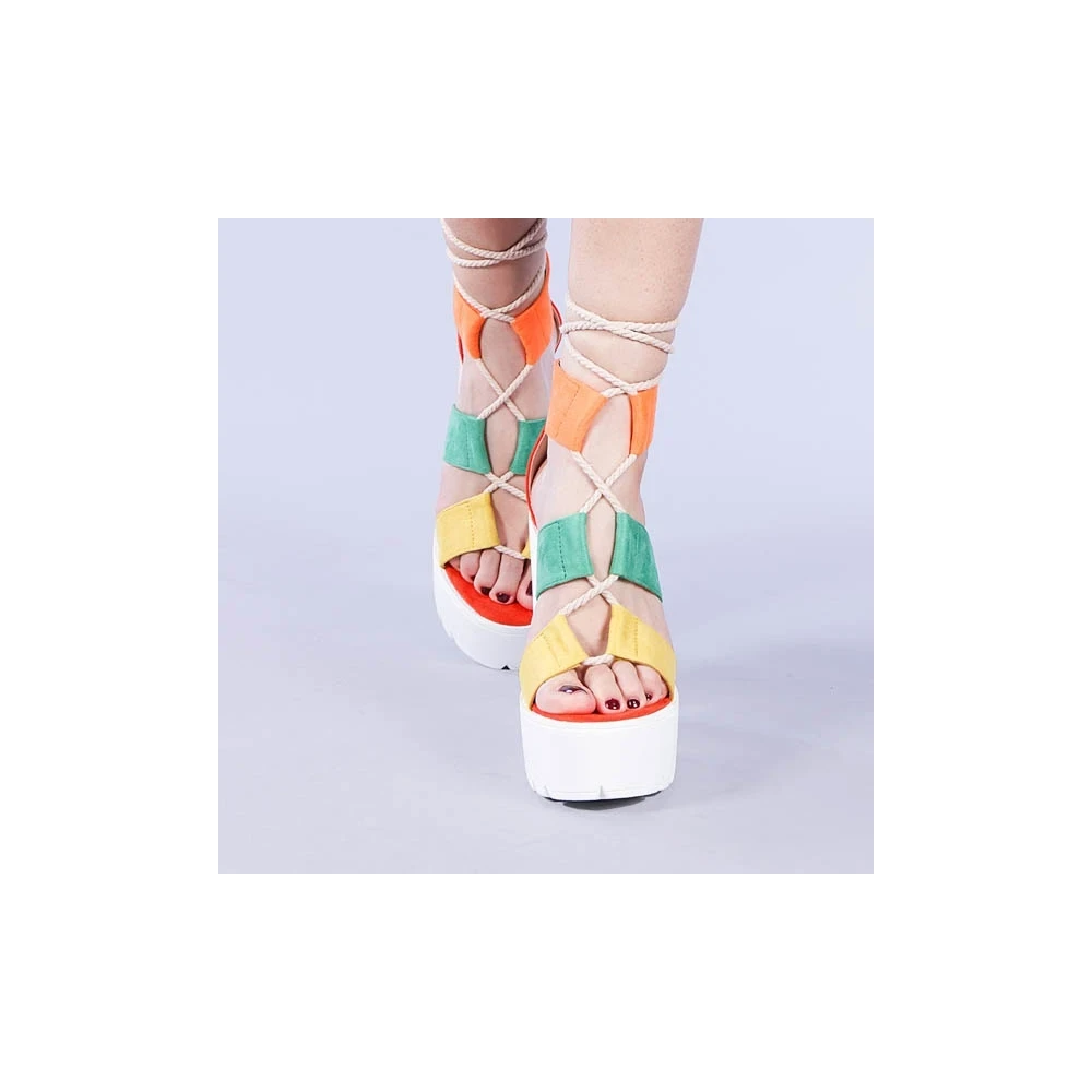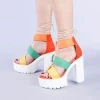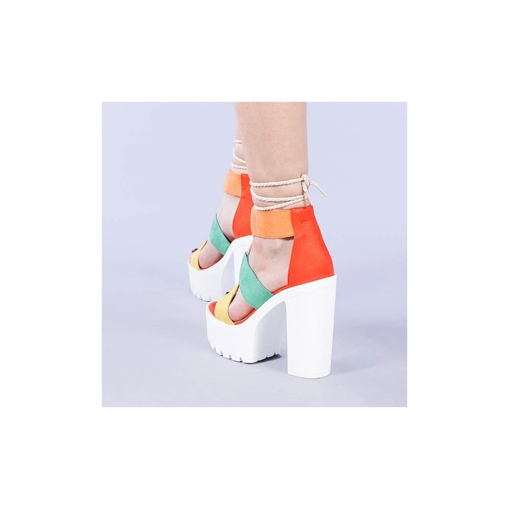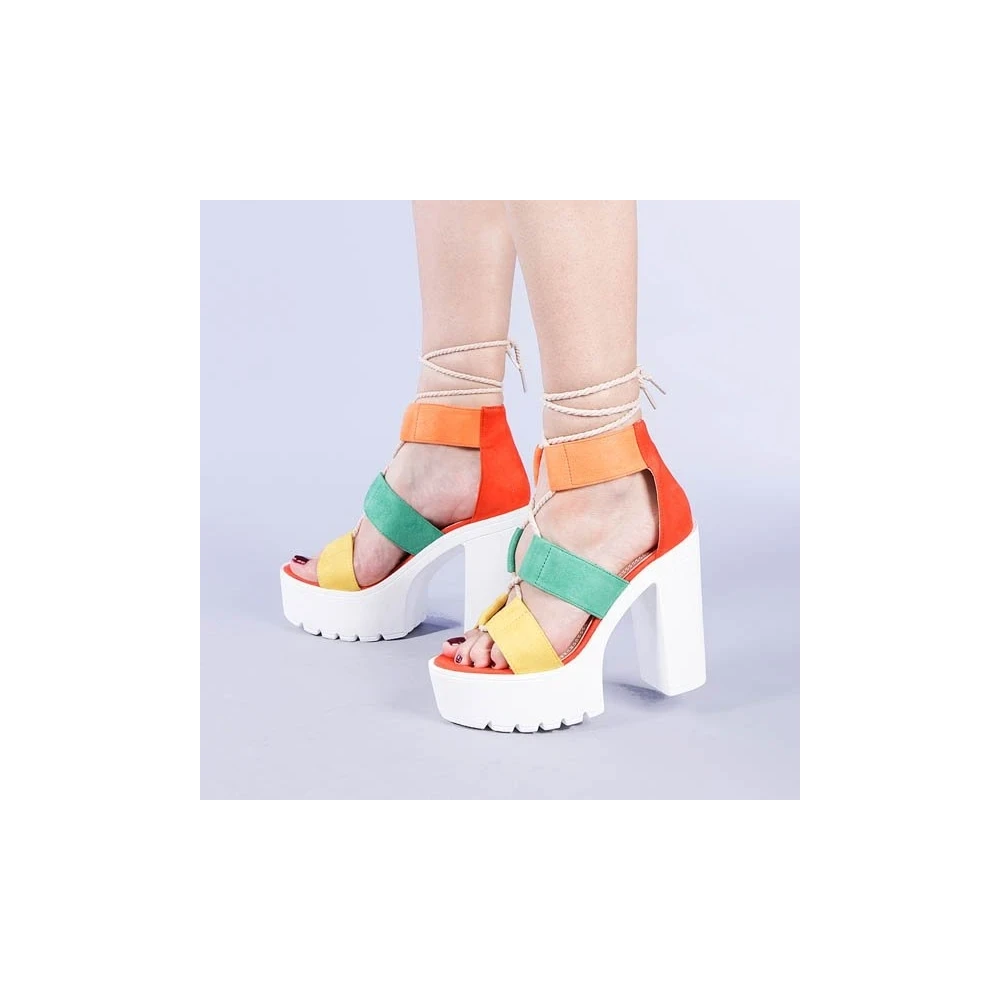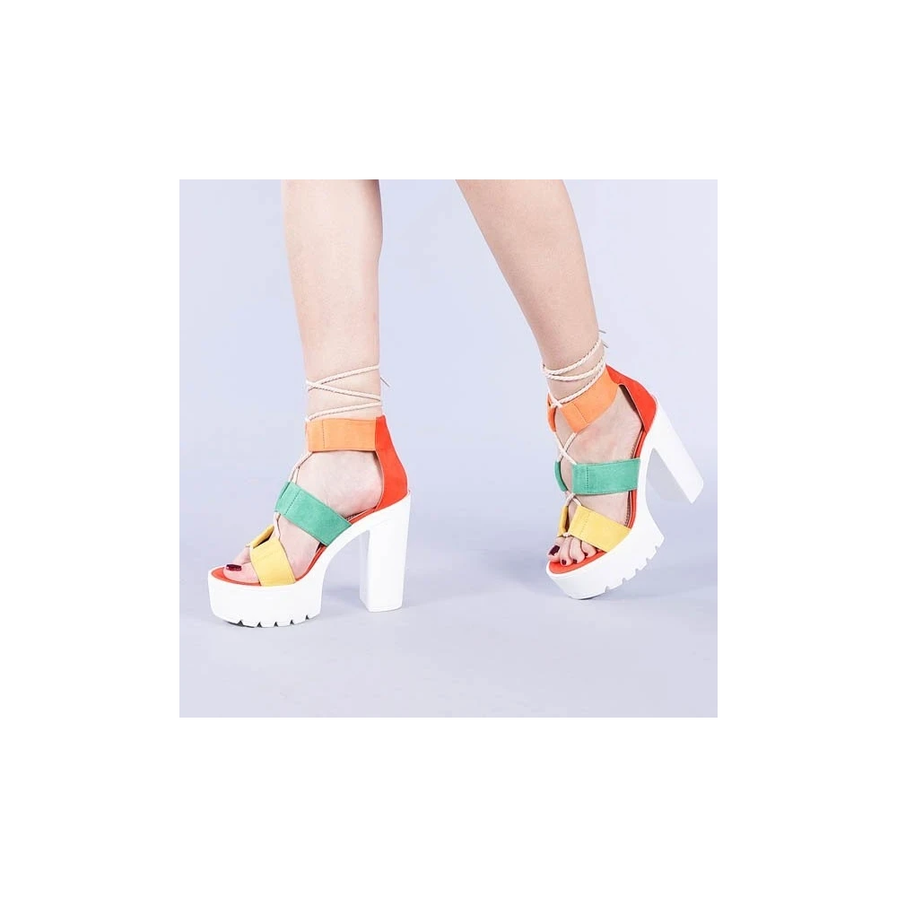 Sandale Dama cu Toc gros si Platforma 2KV78 Bej MeI