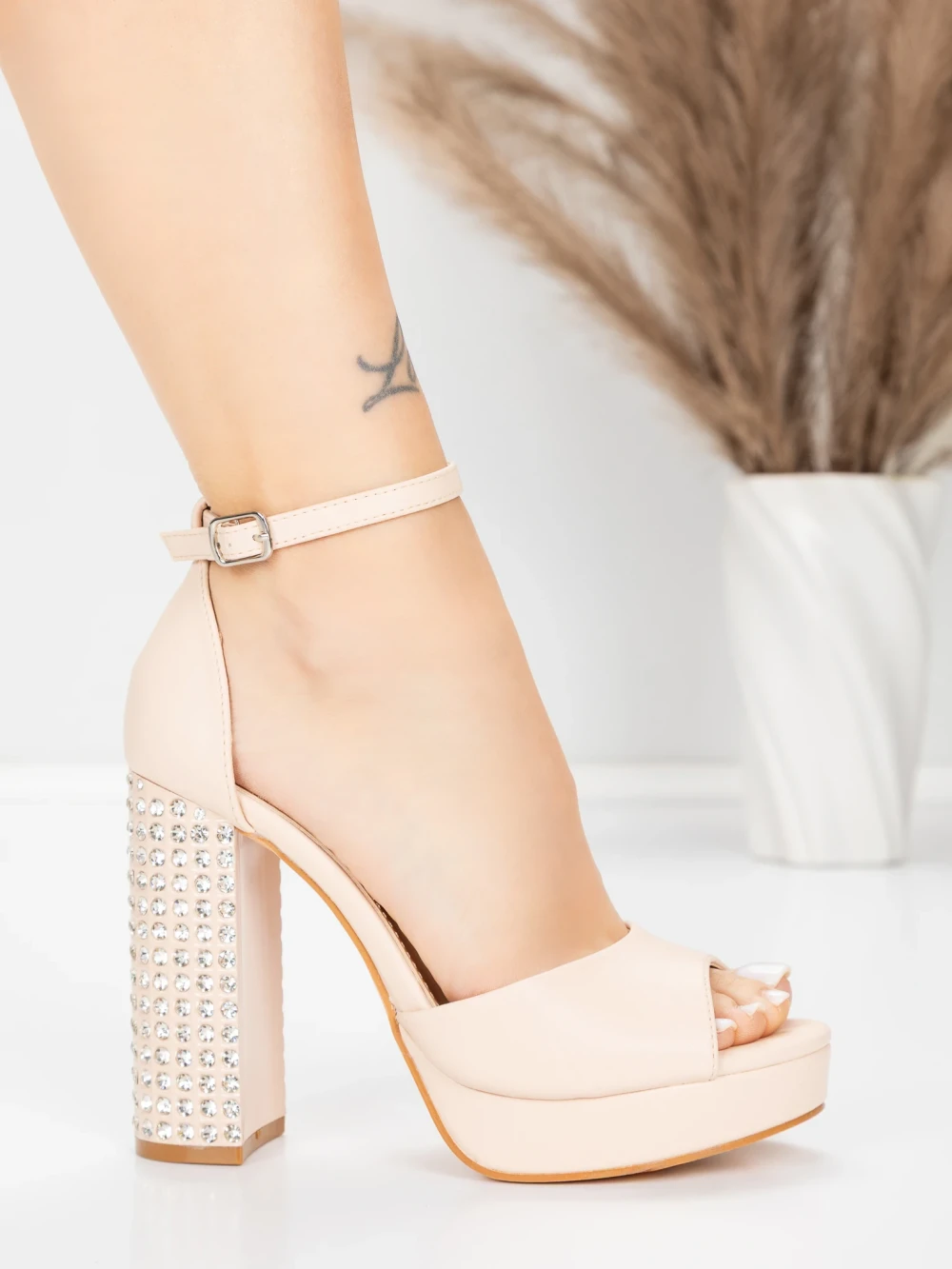 Sandale Dama cu Toc Gros si Platforma 5KV71 Bej | Mei » MeiShop.Ro