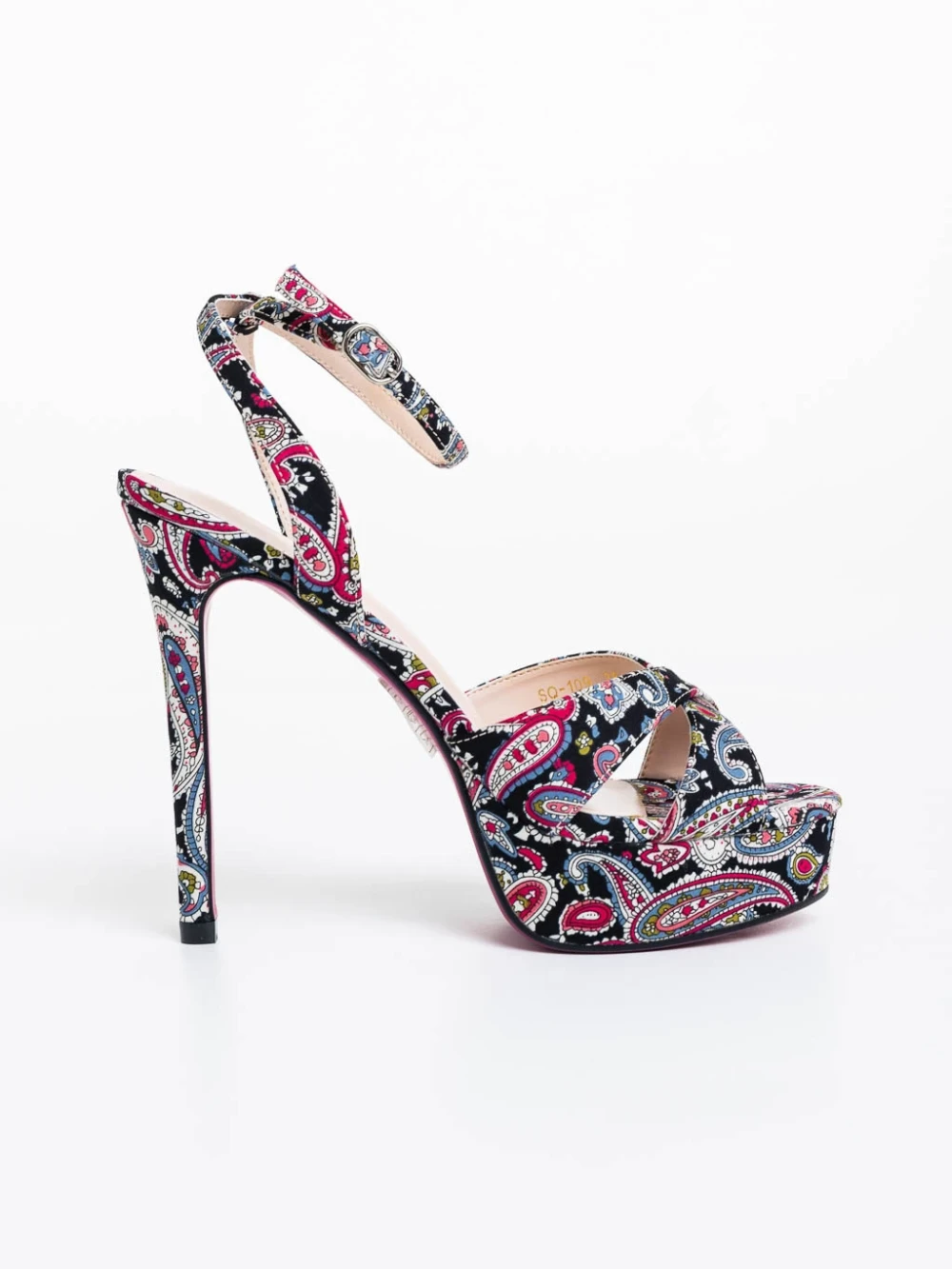 Sandale dama rosii cu negru din material textil Teyona Detalii produs