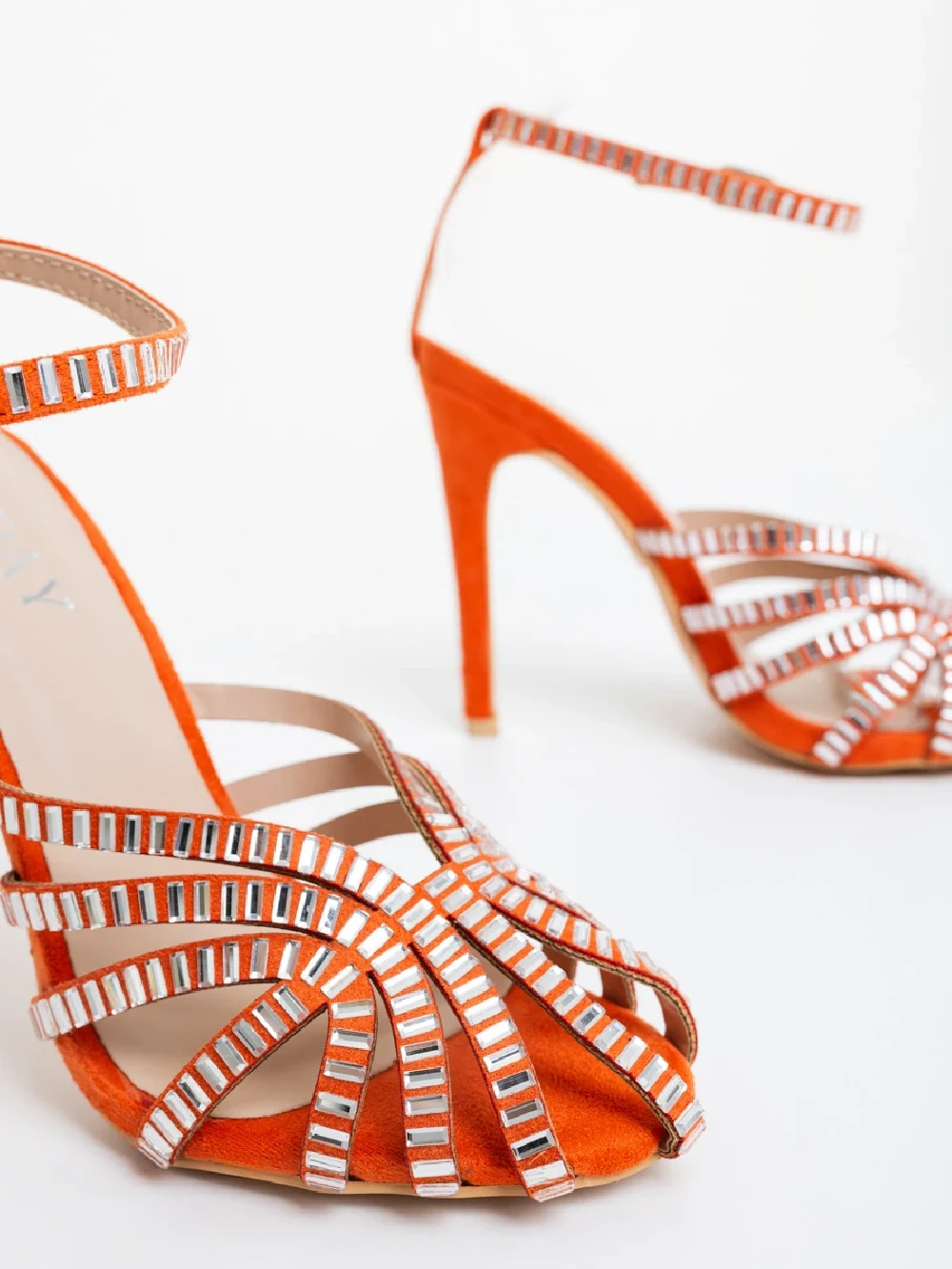 Sandale dama cu toc portocalii din material textil Atrina Detalii produs