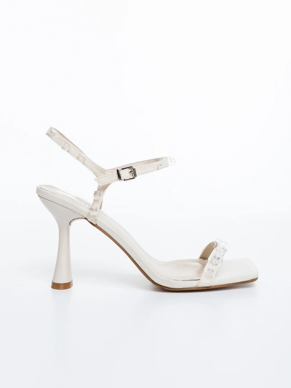 Sandale dama cu toc bej deschis din material textil Laena