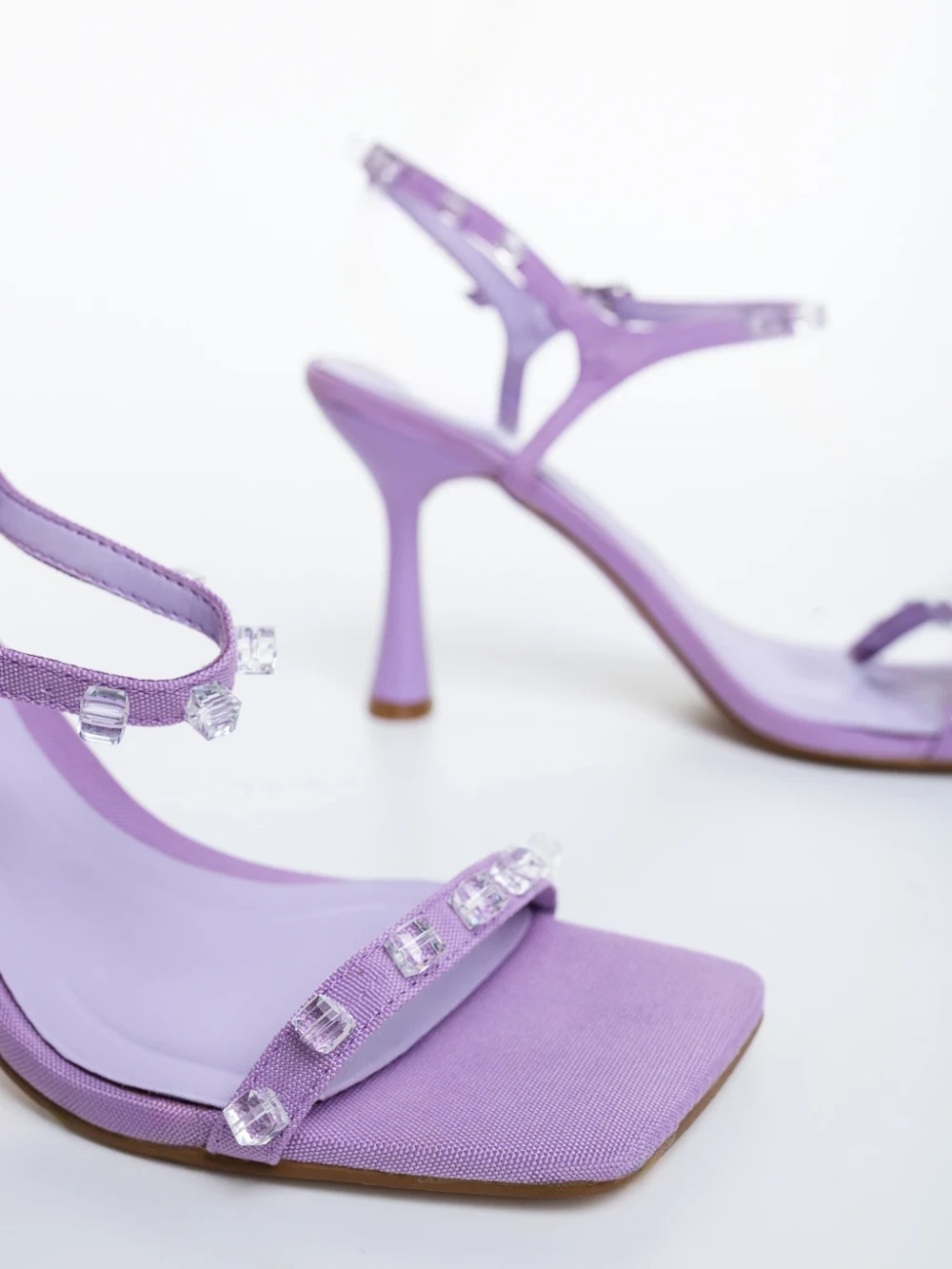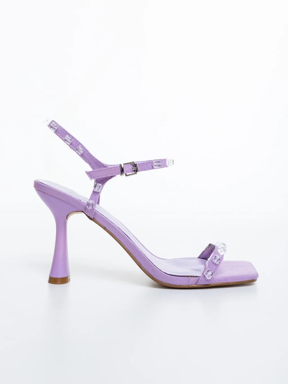 Sandale dama cu toc mov din material textil Anzira Detalii produs