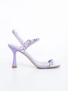 Sandale dama cu toc mov din material textil Lumira
