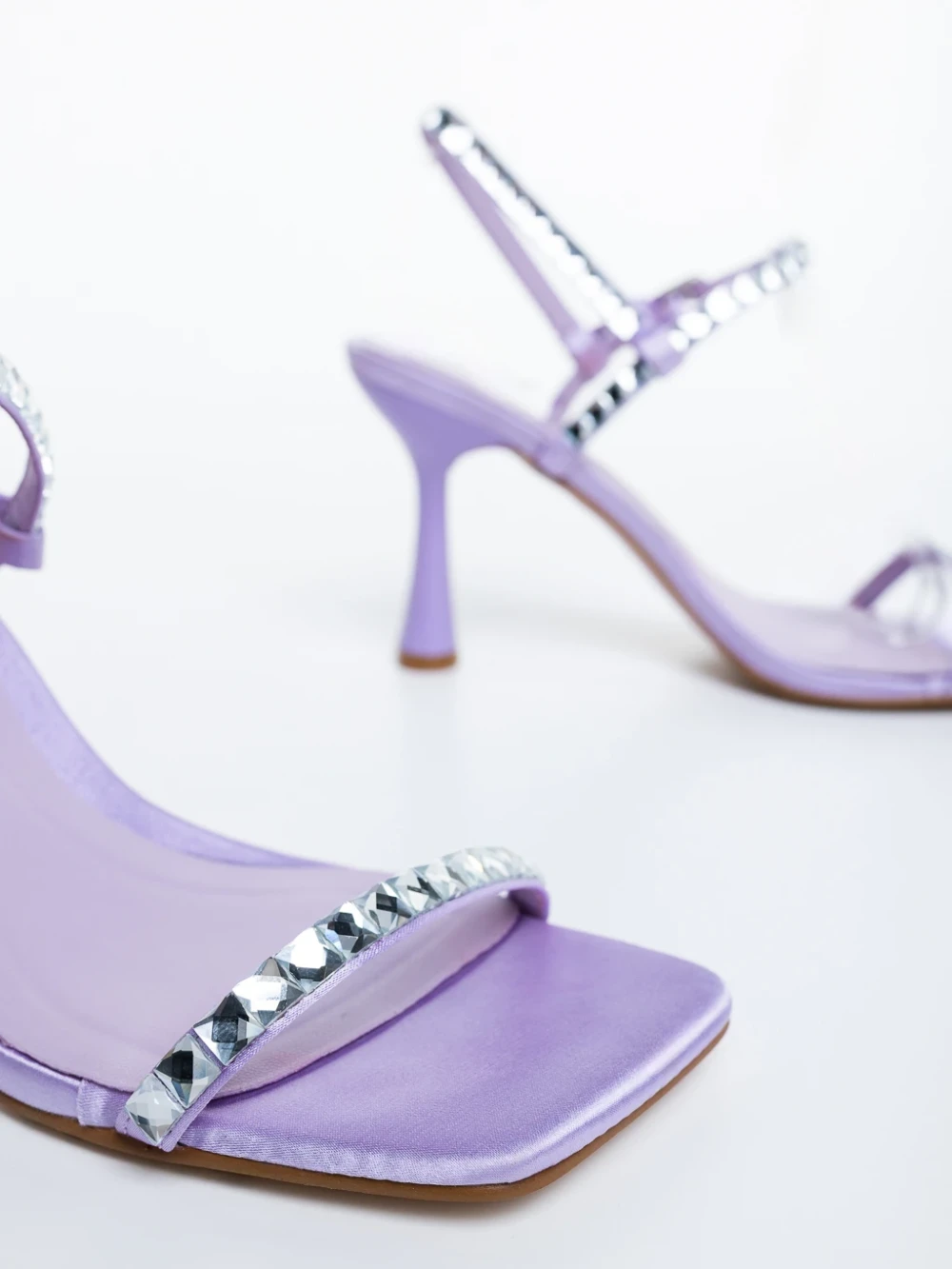Sandale dama cu toc mov din material textil Lumira Detalii produs