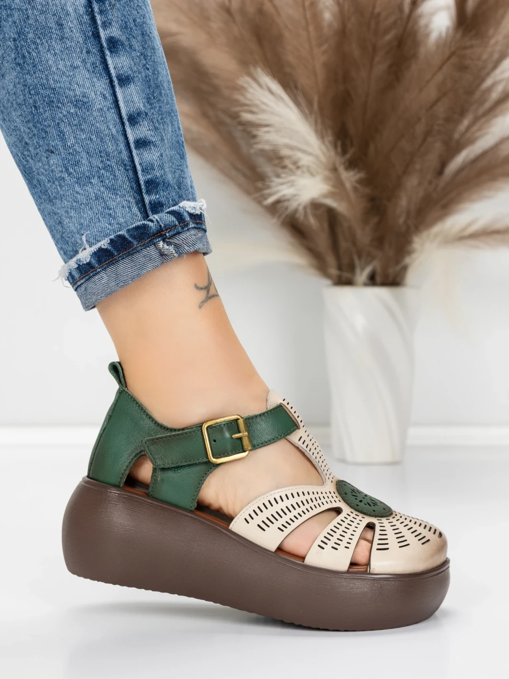 Sandale Dama cu Platforma 10682 Crem-Verde | Advancer