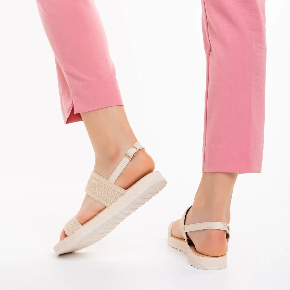 Sandale dama camel din material textil Polly