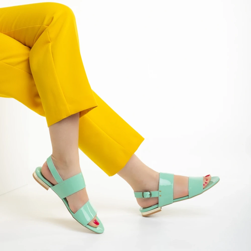 Sandale dama Marco verzi din piele naturala lacuita Kinslee