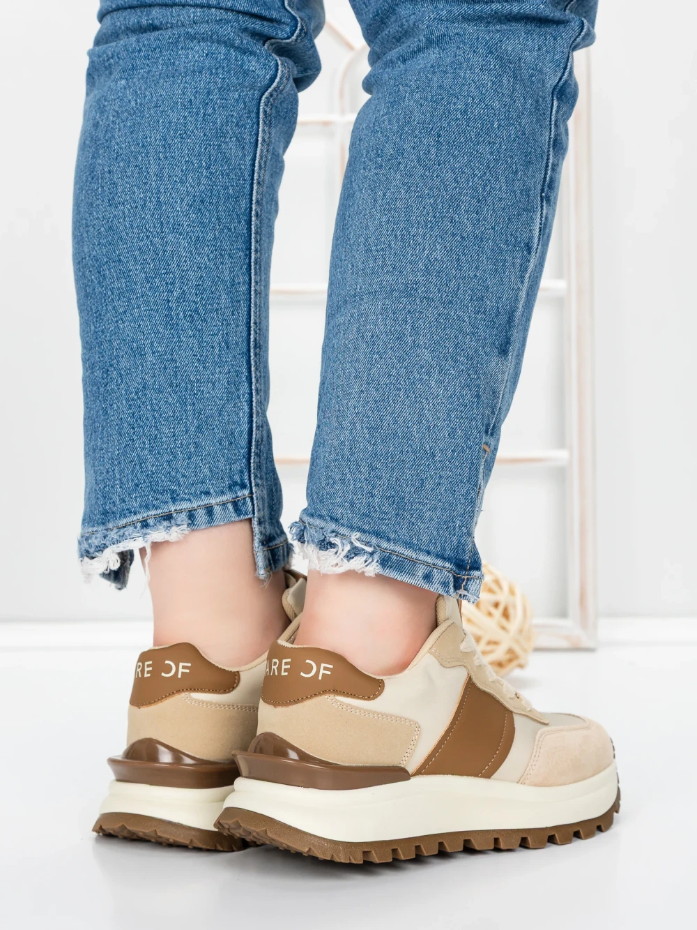 Pantofi Sport Dama din piele naturala 5WZ6 Bej-Alb | Pantoful